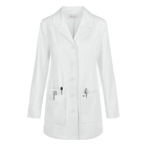 This luxurious and lightweight koi Scrubs Essentials women's lab coat is tops in style, comfort and functionality. Modern classic fit. Length Size S: 35"